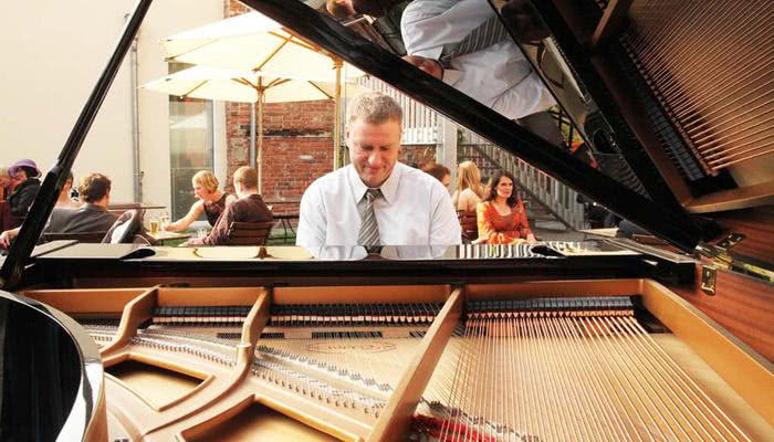 Piano-Musik ist eine stimmungsvolle Untermalung für den Empfang oder das Menü. Unser hauseigener Pianist spielt gerne für Sie an unserem Steinway-Flügel.