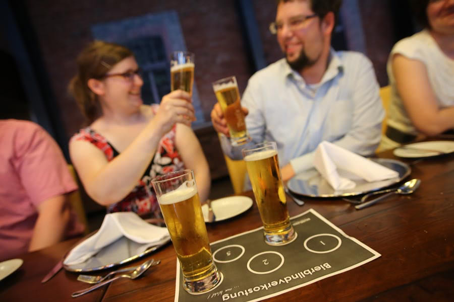 Bei unserem Bierkulinarium reisen Sie einmal quer durch die Welt der Biere. Wir servieren ihnen verschiedene Sorten und ganz unterschiedliche Arten. Und wir „stacheln“ das Bier. Dabei wird ein glühendes Eisen in ein kaltes Bier eingeführt. Dadurch wird der Restzucker im Bier karamellisiert und verleiht ihm ein einzigartiges Aroma. Die Verbindung aus heißem Schaum und kaltem Bier ist ein ganz besonderes Geschmackserlebnis.